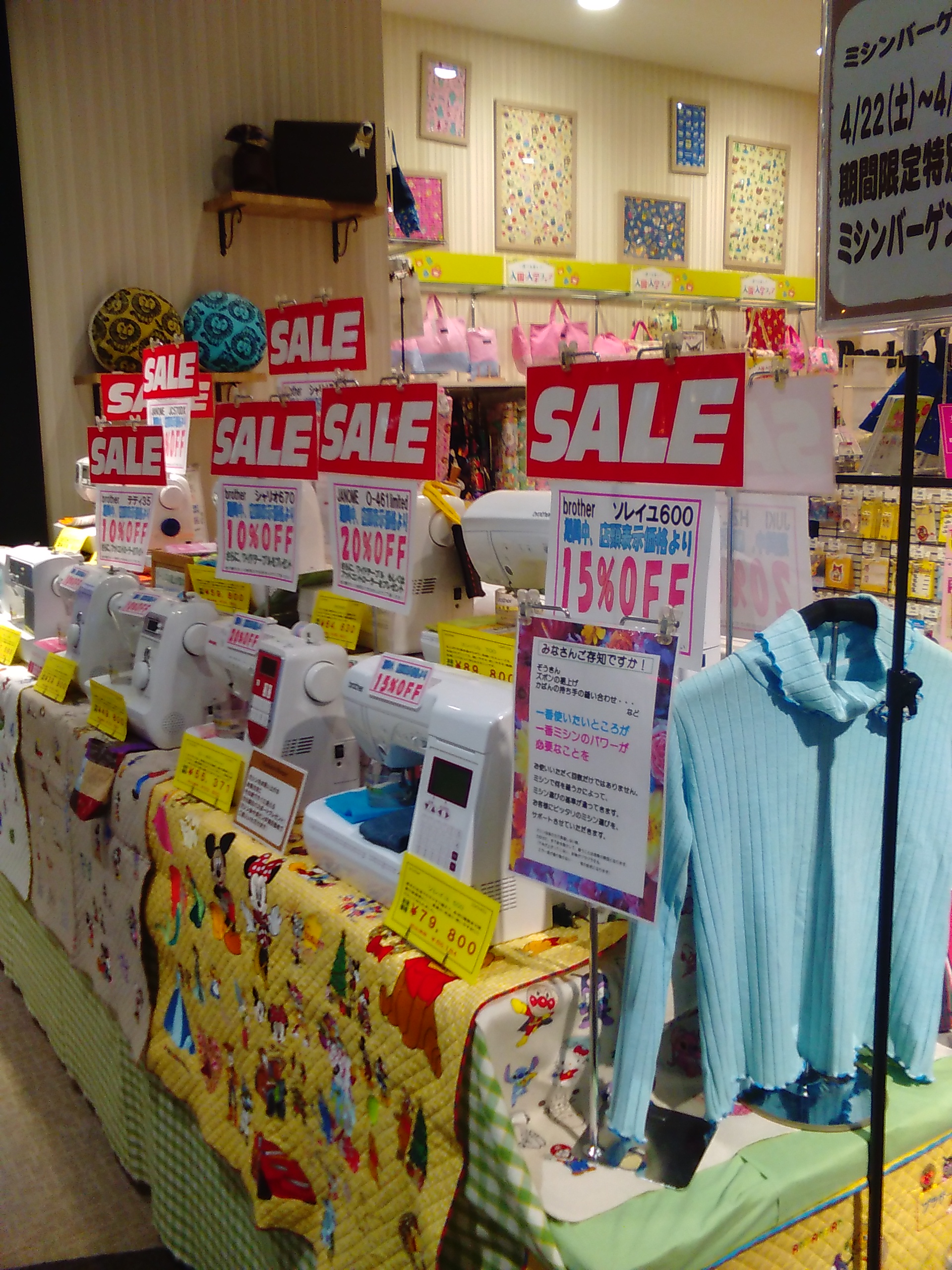 また、これまでにイオンスタイル長久手店にてミシンをお買い上げいただいて、使い方がわからない等ありましたら、10:00~18:00の間ミシン販売員が常駐しますのでお尋ねください。